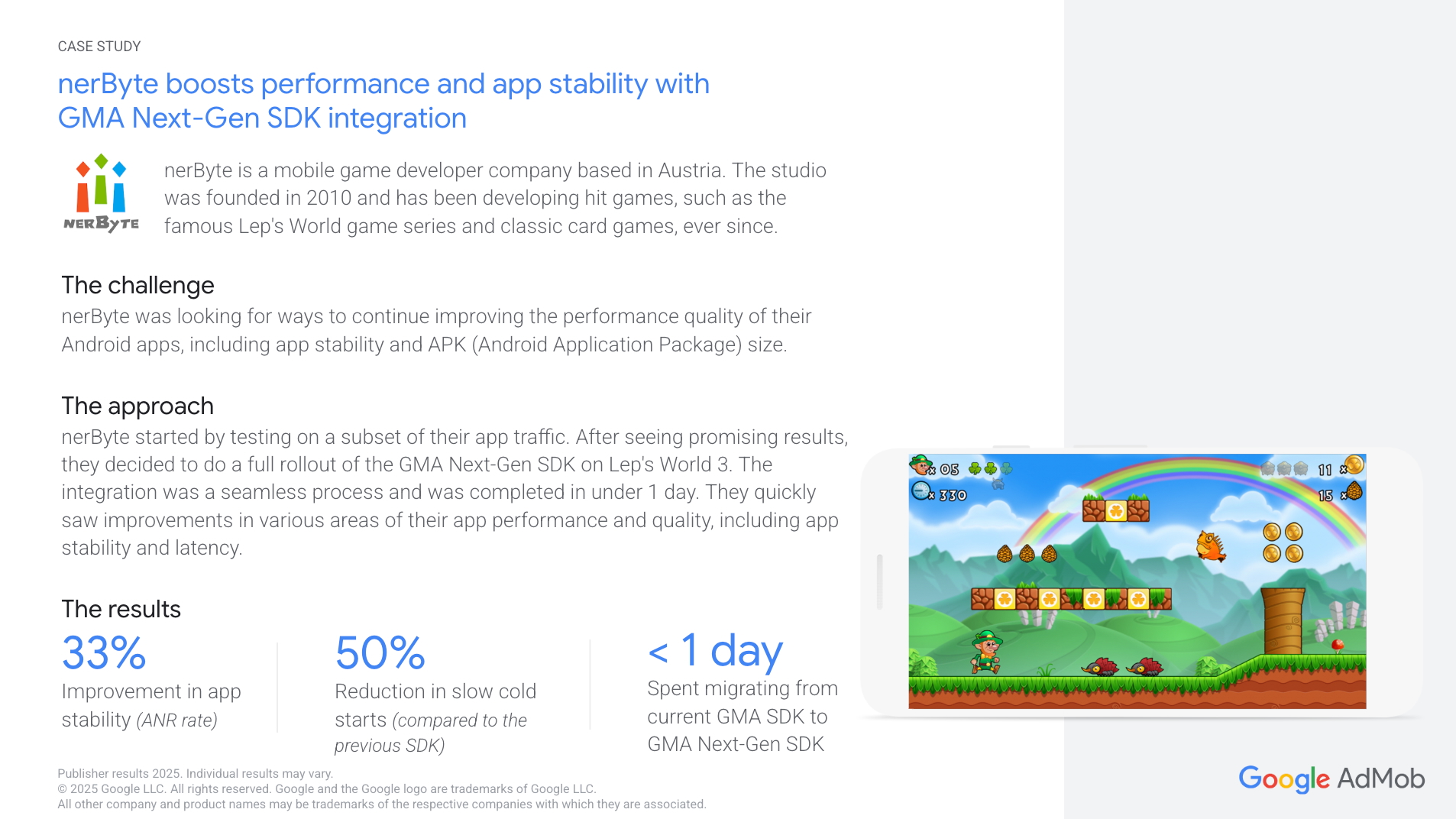 nerByte boosts performance and app stability with the Google Mobile Ads Next-Gen SDK integration
