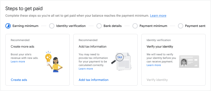 Siga estas etapas para configurar sua conta e receber o primeiro pagamento do Google AdSense.
