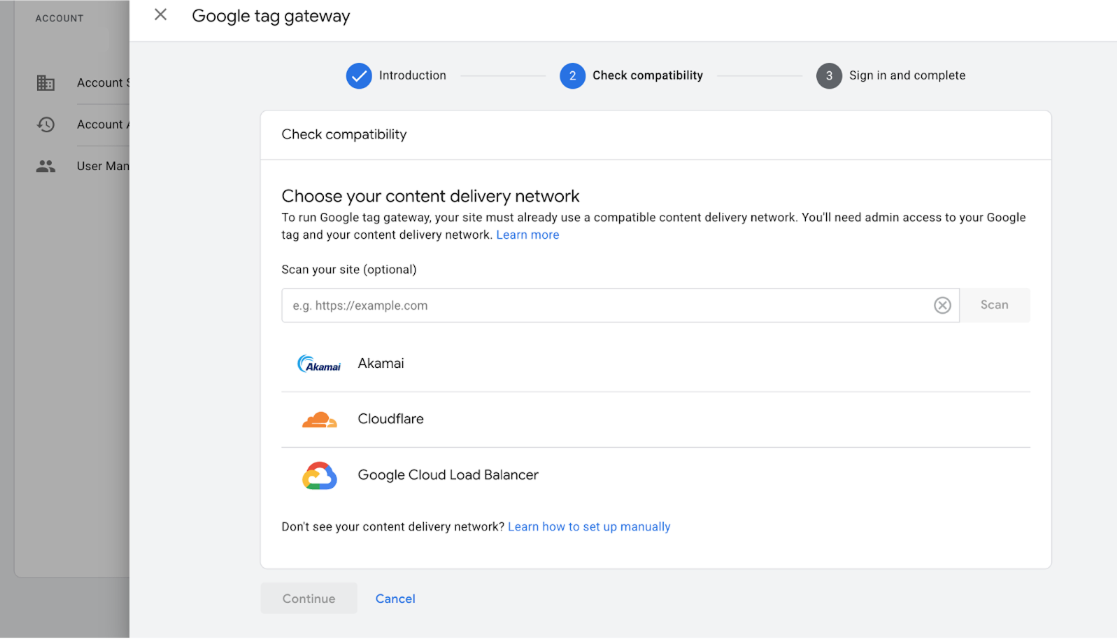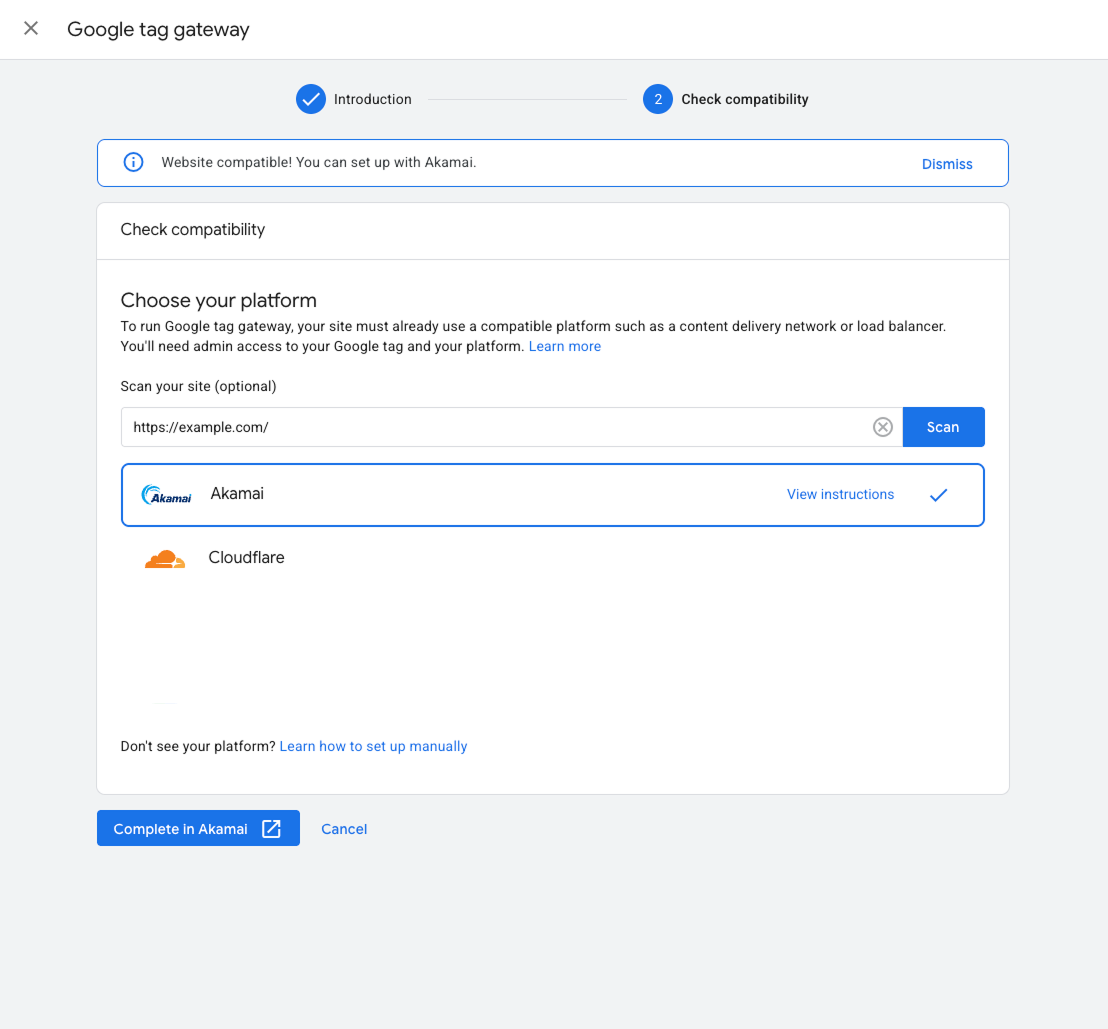 If your website isn’t compatible or detected with Akamai, you can set up Google tag gateway for advertisers manually.