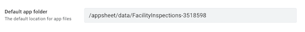 To configure the default app folder, select Settings Settings icon > Information, and under App properties enter a value in the Default app folder setting. For example: