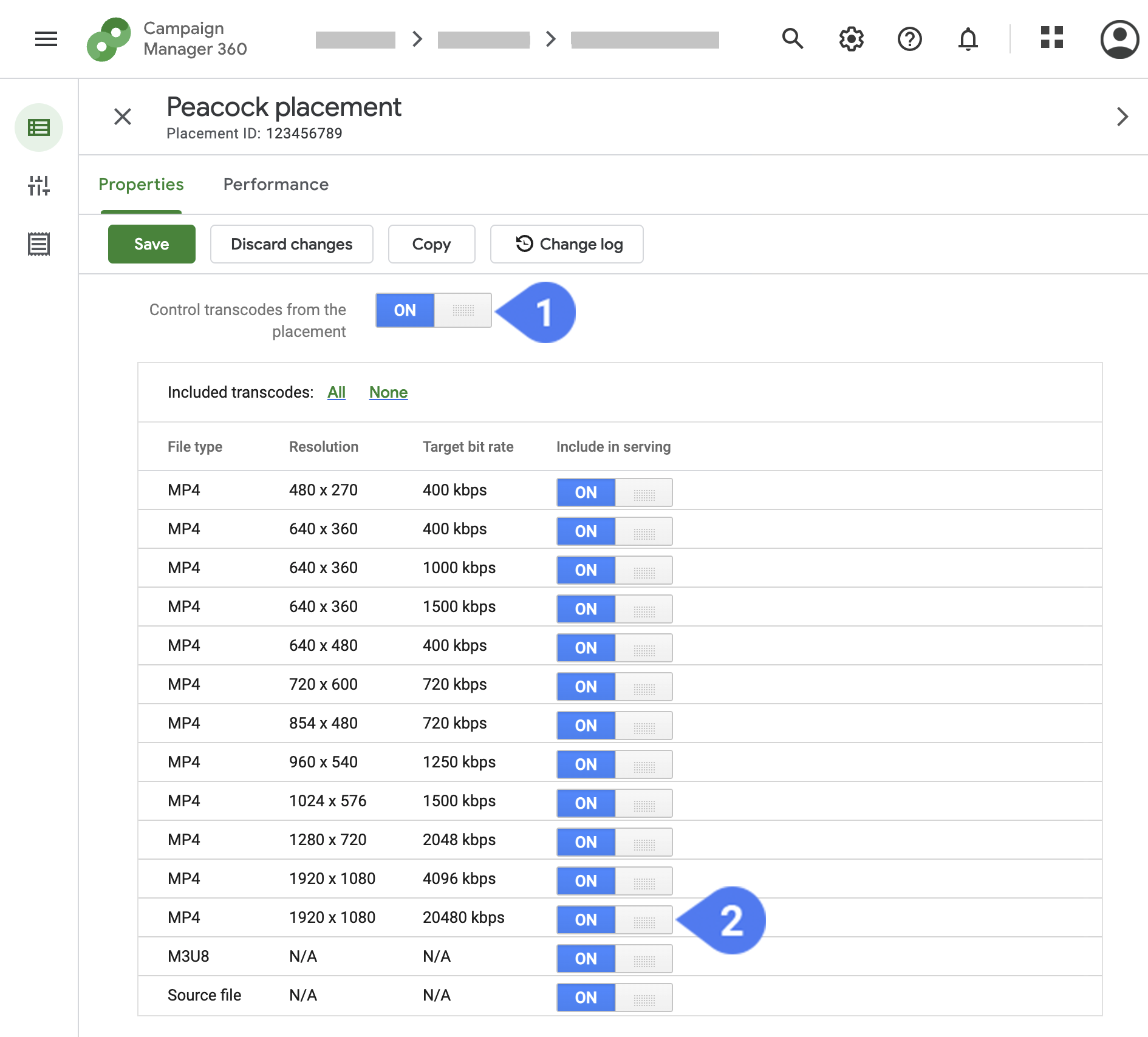 Turn on high-quality transcodes in your placements