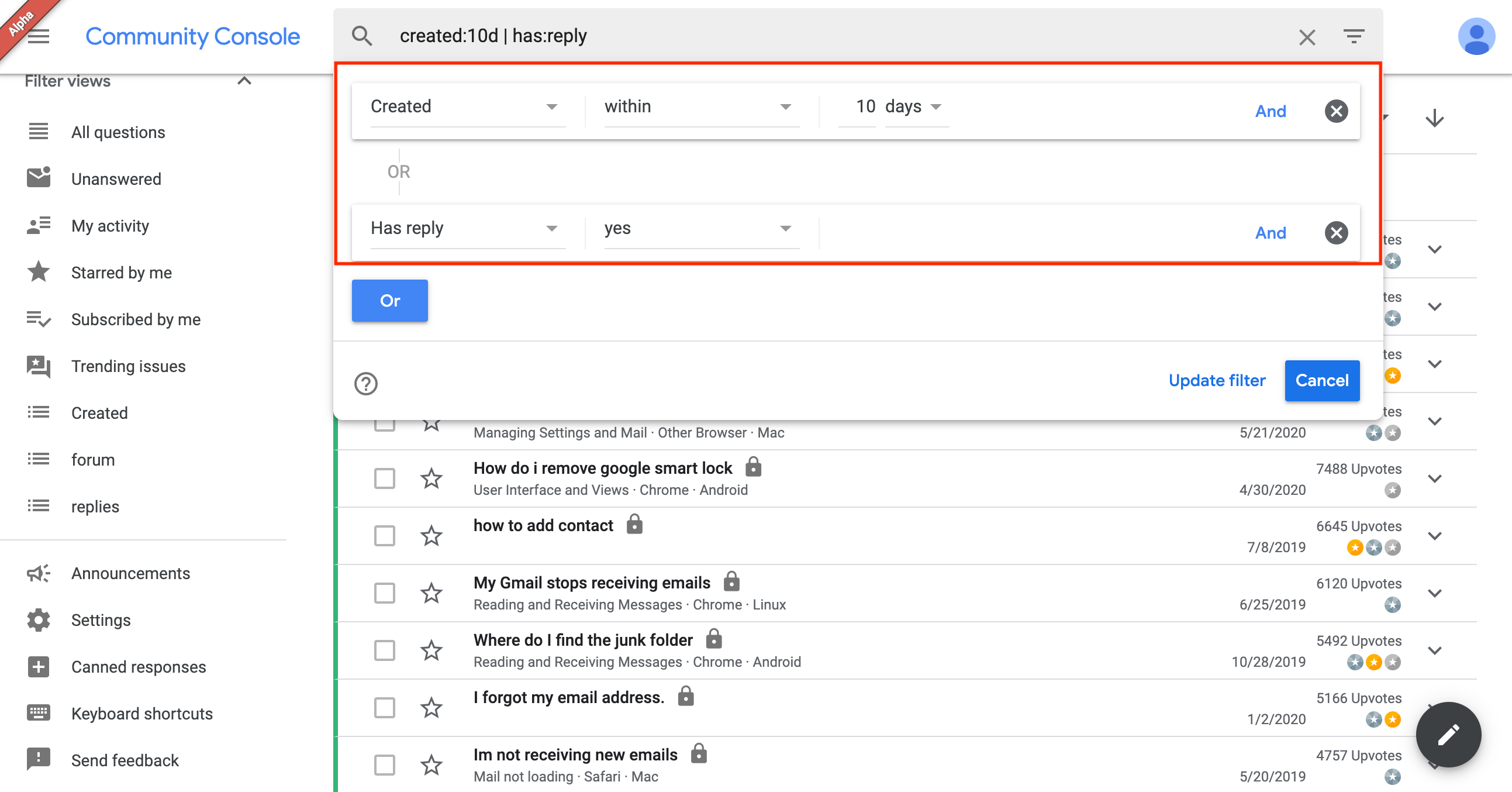 - Select Update filter. The filter is now updated with new conditions.