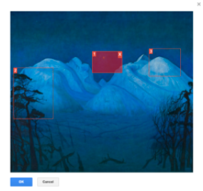 - "Show important areas": If you have annotated important areas in an image, you can choose to display those important areas as a ribbon inside the embed window. To select important areas, open the "select important areas" option from the item page, then click and drag to highlight the areas. See example below: