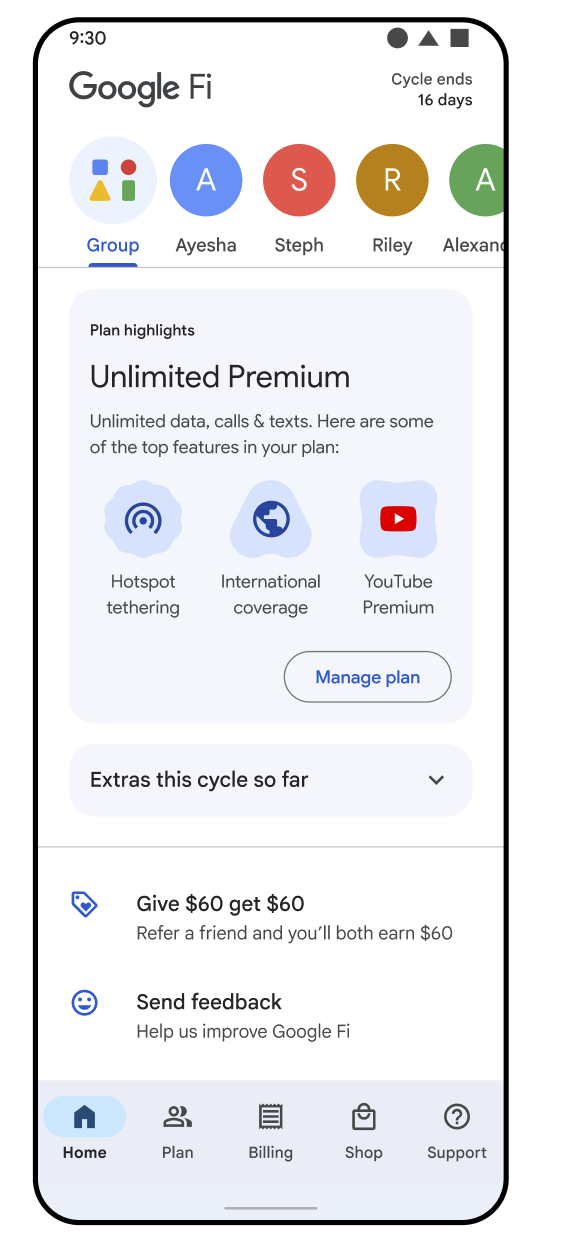 On your home screen, you can find the start date of your new Google Fi plan and your updated benefits.