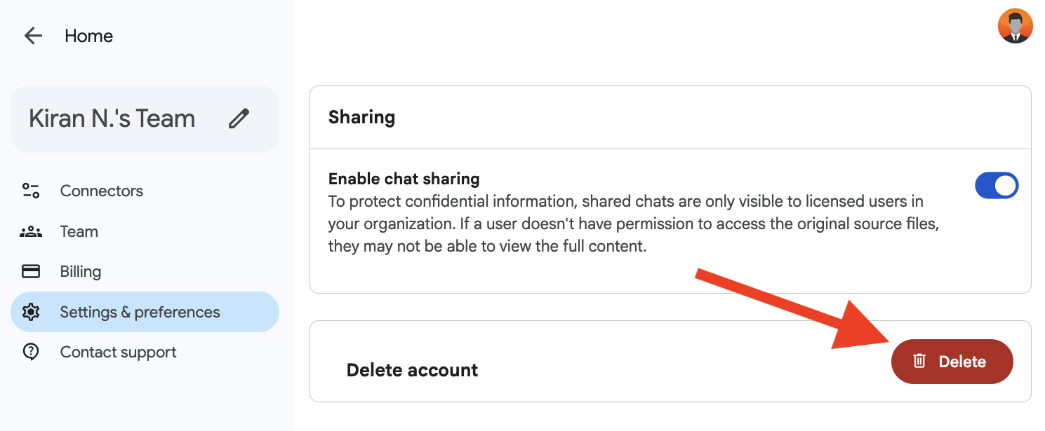 To delete your Gemini Enterprise – Business edition account: