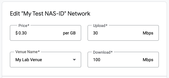 Select the Venue associated with this network under Venue Name.  Provide as much of the requested information as possible:
