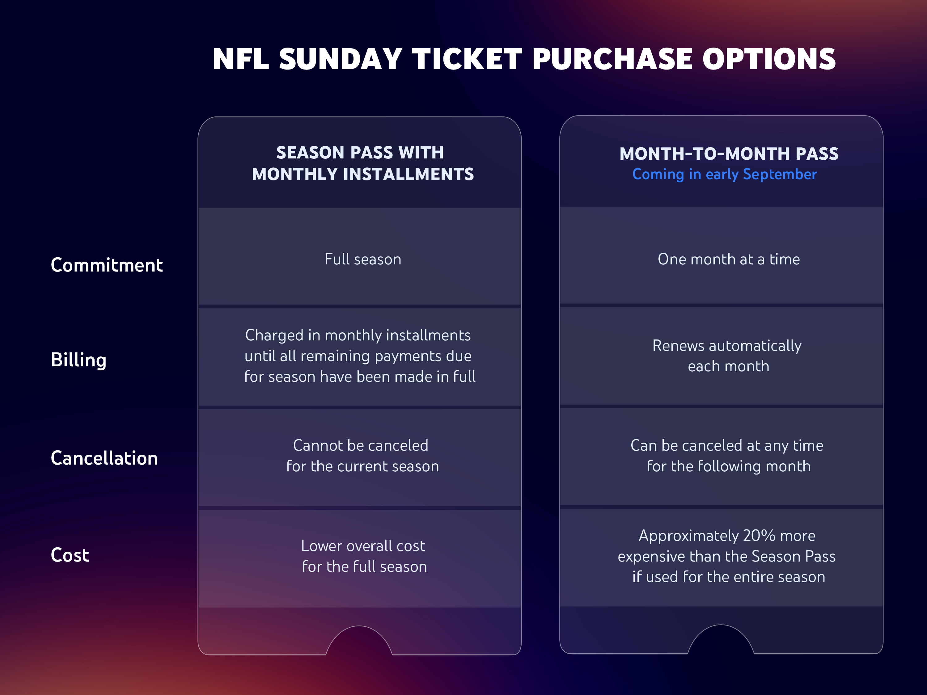 How to buy the NFL Sunday Ticket season pass in monthly installments