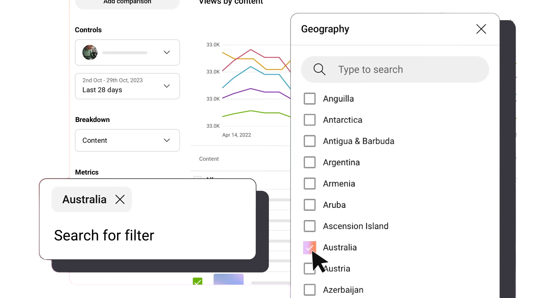 You can segment your audience and video performance by criteria like geography, device, and also use the ‘title’ filter to find certain videos.
